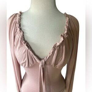 Lulus Bodysuit Ruffled After Your Heart Mauve Pink Long Sleeve Medium
