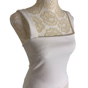 Lulus Bodysuit Tank Top Blouse Square Neck Cream Ivory S NWT