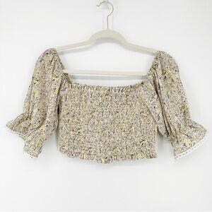 Lulus Boho Floral Cropped Blouse Size Small