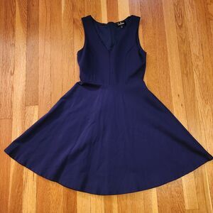 Lulu's "Bon Appetit" Sapphire Blue Fit & Flare Sleeveless Skater Mini Dress Sz S