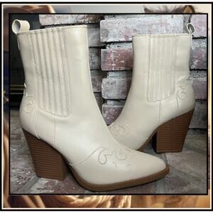 Lulus Bone Pointed-Toe Ankle-High Brextin Western Boots Size 8.5