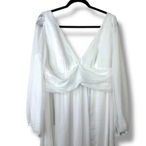 Lulus Bridal NWOT Enchant My Love White V-Neck Sheer Long Sleeve Maxi Dress XXL