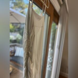 Lulus Bridal White Ruched Maxi Dress with Slit - Size XL