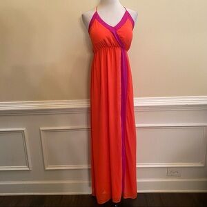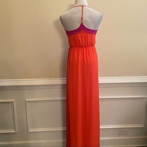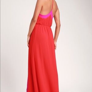 Lulus Bright Side Coral Red Color Block Sleeveless Maxi Dress Size XS