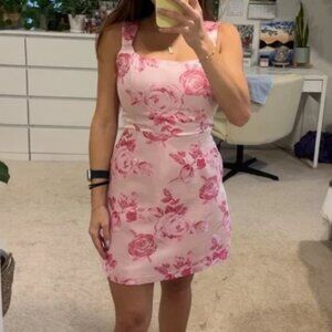 Lulus Brighter Side Pink Floral Satin Jacquard Mini Dress – Size Medium