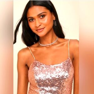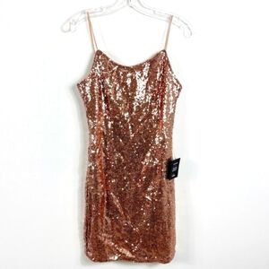 Lulus 'Bring It' Rose Gold Sequin Bodycon Mini Dress Scoop Neck Adj Straps M NWT