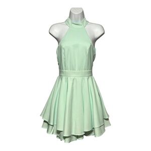 Lulus Rehearsal Dress Junior/Misses Mint Green Halter Skater Tiered Mini Dress
