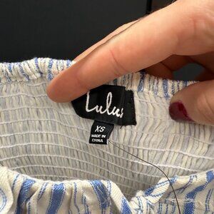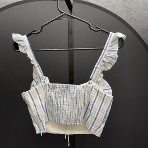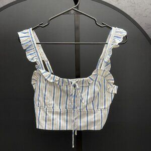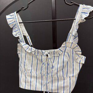 Lulu's Bring the Heat Blue and White Striped Ruffled Crop Top. NWT! Size XS. Retail: $38. Pit to pit: 15". Total length: 6.5".