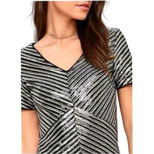 Keywords: sequin mini dress, gold party dress, chevron sequin dress, Lulus dress, V-neck mini dress, cocktail dress, silver party dress, women's gold dress, metallic dress, glitter dress, formal short dress, holiday mini dress, short sleeve evening dress, party dress for women