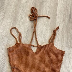 Lulus Brooklyn Girl Brown Knit Halter Bodysuit Size Small