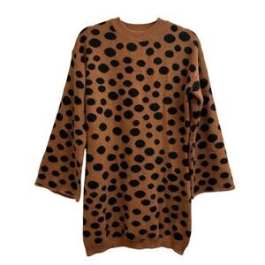 Lulu's Brown Beige Black Polka Dot Bell Sleeve Sweater Dress Size Small Midi