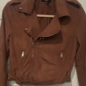 Lulu's Brown Faux Suede Moto Jacket in size small