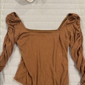 Lulu’s Brown Ribbed Ruched Sleeve Top