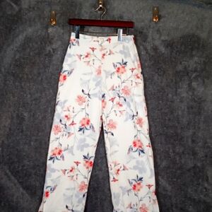 Stylish cream pants with blue patterns. Perfect for any occasion...lulus floral wide leg pants. they are lined...has side zipper closure..there in good condition.. shell linen/ rayon. lining 100% cotton ..measurements are in the listing...pre Owen