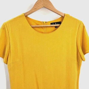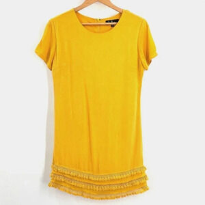 Lulus Buenos Aires Short Sleeve Mini Dress Shift Crochet Trim Golden Yellow Sz M