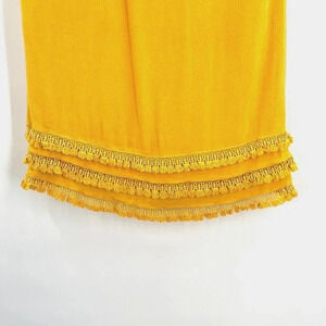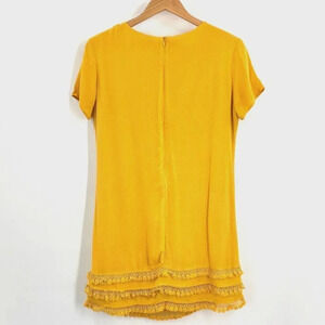 Lulus Buenos Aires Short Sleeve Mini Dress Shift Crochet Trim Golden Yellow Sz M cr
