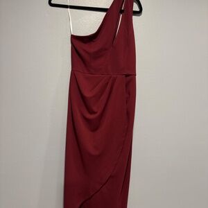 Lulus Burgundy One-Shoulder Asymmetrical Dress - M