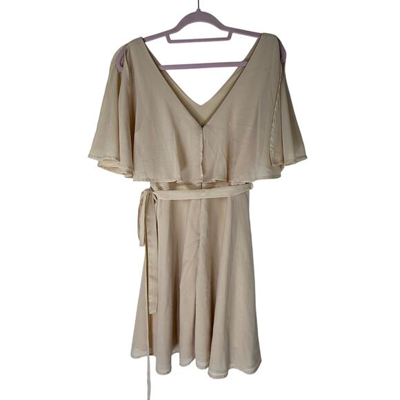 Lulus Butterfly With Me Slit Short Sleeves Georgette Falls Peach Dress Size L