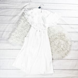 Lulu’s Cabaret Queen White Polka Dot Embossed Satin Backless Midi Dress Sz Small