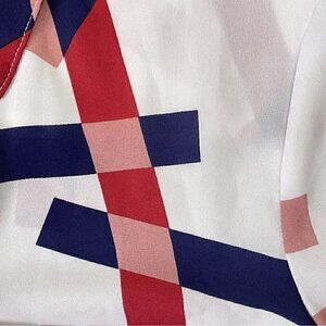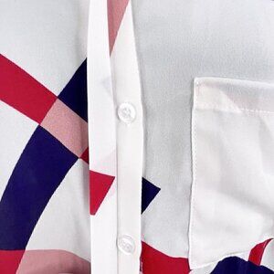 Lulus Camrose White Geometric Print Button-Up Long Sleeve Top Blouse Women’s M