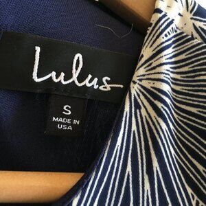 Lulus Cancun Calling Navy Blue Print Shift Dress