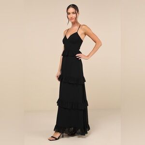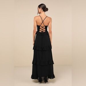 Lulus Captivating Class Black Ruffled Tiered Lace-Up Maxi Dress