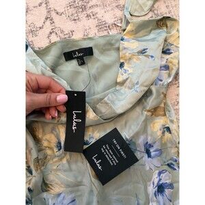 Lulus Captivating Grace Sage Green Floral Satin Ruffled Maxi Dress Size Large