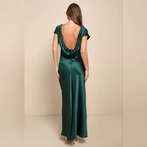 Lulus Captivating Presence Forest Green Satin Cowl Back Maxi Dress Wedding NWOT. See all pictures for details. Currently SOLD OUT online.