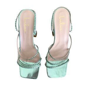 Lulu's Carlotta Aqua Metallic Rhinestone High Heel Slide Sandals Size 7