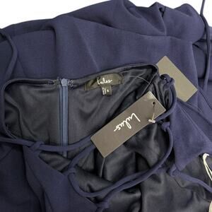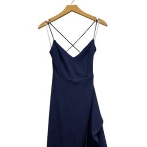 Lulus Caryl Dark Navy Ruffled Tulip High-Low Maxi Dress size Small NWT