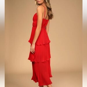 Lulus Cascading Crush Red Tiered Bustier Midi Dress Small Red NWT in packaging