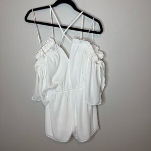 Lulus Catch Me Crushing White Off-the-Shoulder Romper