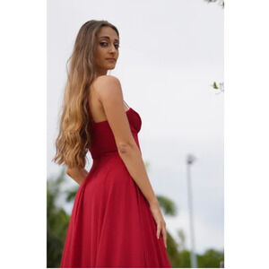 Lulus Cause for Commotion Red Pleated Bustier Maxi Dress Size XS