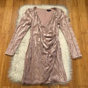 Lulus Celebrate It Dusty Mauve Velvet Embellished Tulip Draped Mini Dress size L