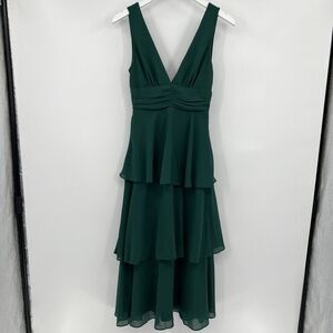 Lulus Celebration Time Emerald Green Sleeveless Tiered Midi Dress Size XS