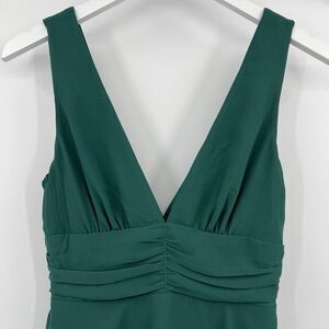 Lulus Celebration Time Solid Emerald Green Sleeveless Tiered Midi Length Dress Layered Lined Zip Up Side Zipper V-Neck Cocktail Wedding Guest