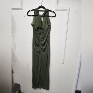 Lulus Celebratory Love Olive Green Mesh Ruched Halter Maxi Dress L Wedding Party