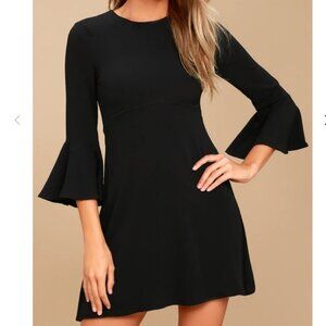 Lulus Exclusive! Step out in the Lulus Center of Attention Black Flounce Sleeve Dress and all eyes will be on you! Textured, lightweight woven fabric falls from a rounded neckline, into a darted bodice, empire waist, and lightly flared skirt. Three-quarter flounce sleeves add a trendy, finishing touch. Hidden back zipper.