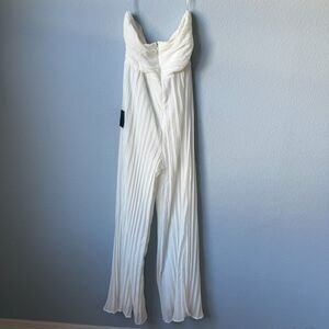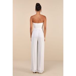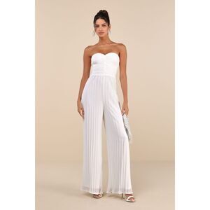Lulus Certainly Charming White Pleated Strapless Wide-Leg Jumpsuit