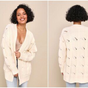 Lulu's Chalet Vibes Cream Chunky Cable Knit Oversized Sweater Size XS