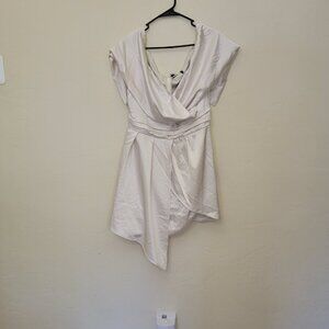Lulus Champagne Always Celebrating Satin Off Shoulder Mini, #1421476, Sz XL, $56
