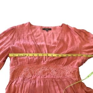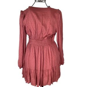 Lulu’s Charming Approach Rusty Rose Swiss Dot Tiered Mini Dress Size Medium