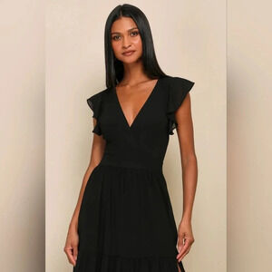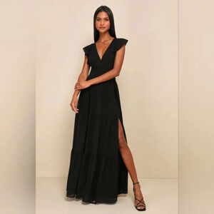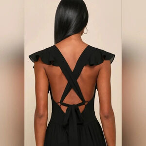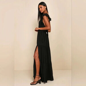 Lulu's Charming Success Black Tiered Lace-Up Backless Maxi Dress L Wedding Party. New without tags. See all pictures for details.
