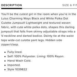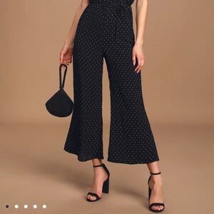 Lulus Charming Ways Black White Polka Dot Culotte Jumpsuit. Size small. Excellent condition, just missing the tie belt, which can easily be replaced by another one you have.