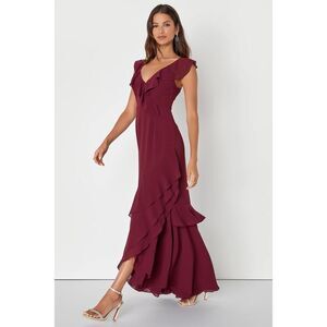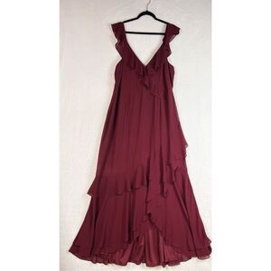 Lulus Charming Event Burgundy Asymmetrical Ruffled Maxi Dress Size 2X NWOT