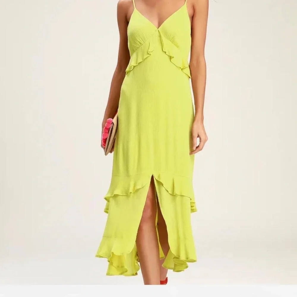 Lulu's Chartreuse High-Low Ruffle Slip Dress