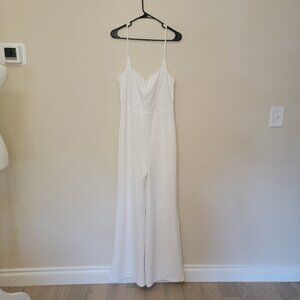 Lulus Cheers to Chic Ivory Sleeveless Jumpsuit Wide Leg Stretchy, Size L