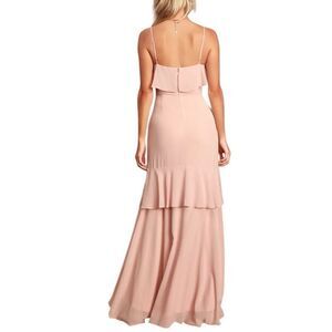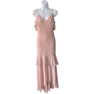 Lulus Cherish the Moment Blush Ruffled High Low Maxi Dress Large