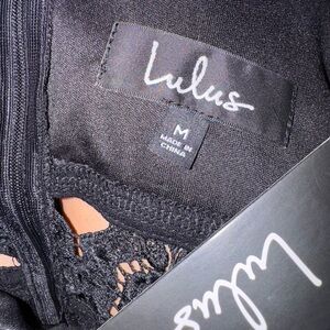 Stylish black mini dress with lace accents. Perfect for nights out. Modern and chic design.
