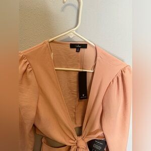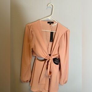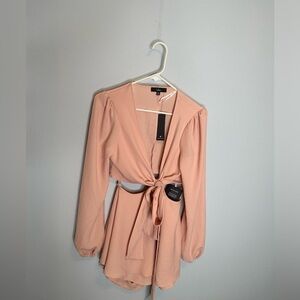 Lulus Chic Encounter Blush Long Sleeve Cutout Tie-Back Romper new size medium